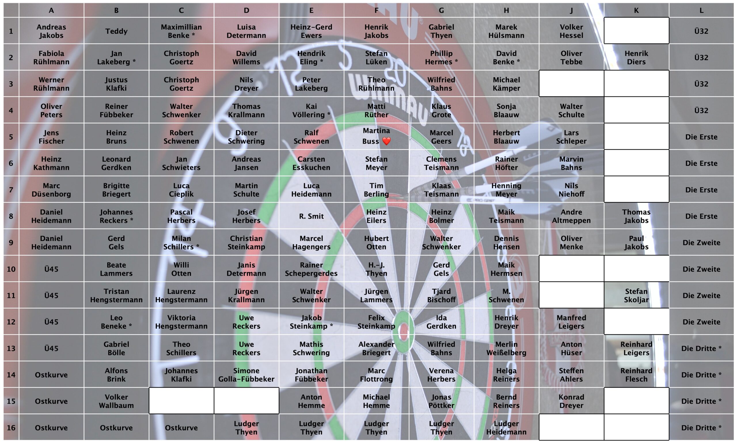 Sollte hinten dem Namen ein * stehen, so ist der Beitrag noch zu zahlen.